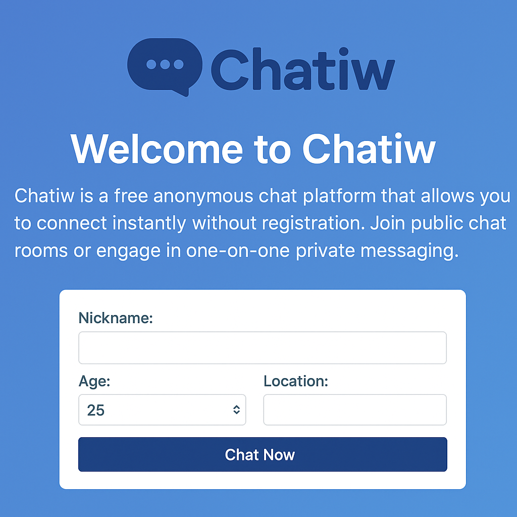 Chatiw is a free online chat service launched to make chatting simple and accessible. The platform allows anyone to enter a nickname, age, and location to start chatting immediately. There is no requirement for registration, email verification, or password setup. This makes it one of the fastest ways to meet new people online.